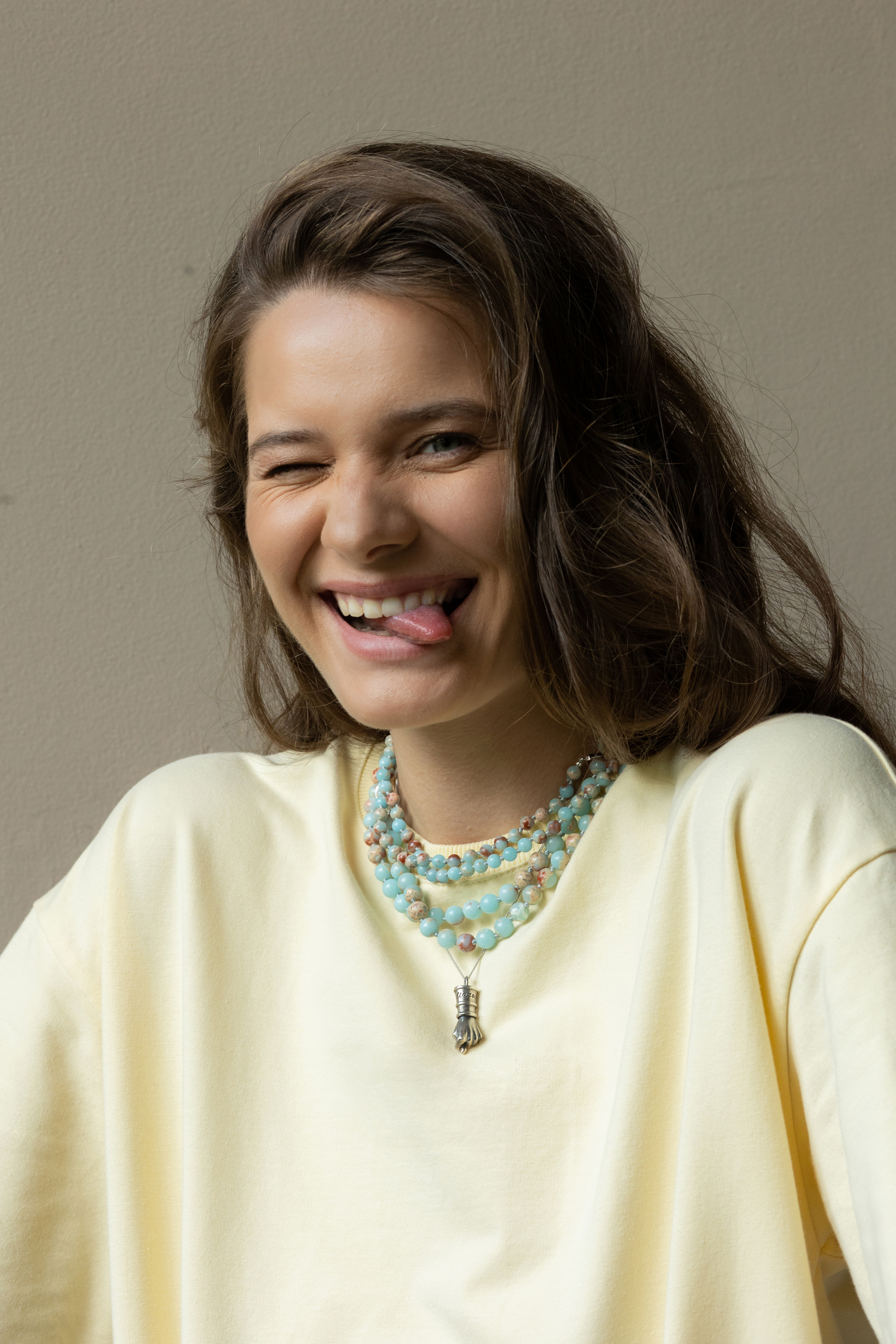 Бусы, а вернее колье из натуральных камней у нас представлены разной длины. Колье из лабрадора или из горного хрусталя можно носить как чокер или чуть свободнее, вписывать в сеты или носить соло, добавив акцентную подвеску на карабине.