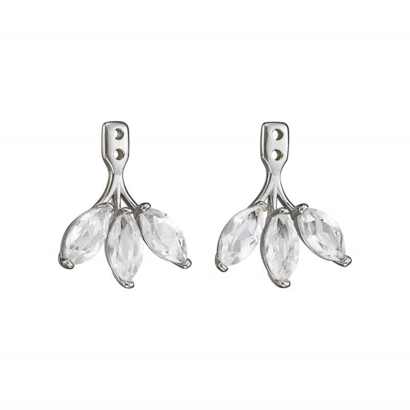 Обладательницы нескольких проколов могут придумывать самые неожиданные сочетания из самых традиционных пусет. Будто смешивая краски на палитре, можно замиксовать разные по форме, вставкам и оттенку украшения. В этом сете мы добавили еще и джекет – самостоятельную подвесную часть, которую можно «подружить» с любым пусетом.