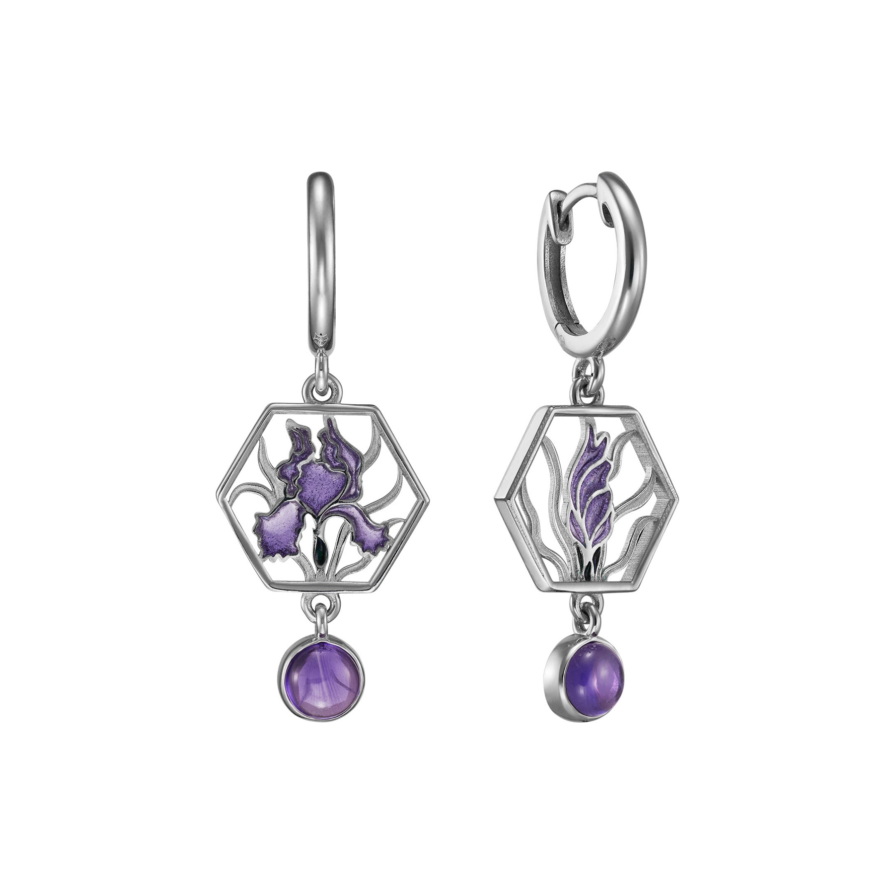 Пчелка, разместившаяся на воротничке задает сету движение: кажется она устремилась на цветок ириса. Пусет с вставкой из хризолита – будто листочек. Пусет с иолитом - как капелька росы, точка, завершающая сюжет.